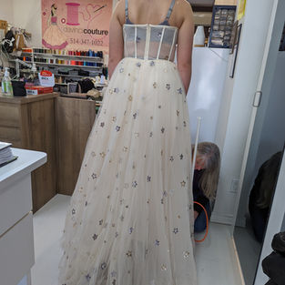 Diverses coutures, telles que l'ajout d'une fourche de pantalon ou d'une fermeture éclair sur une jupe, un pantalon, un manteau ou une robe